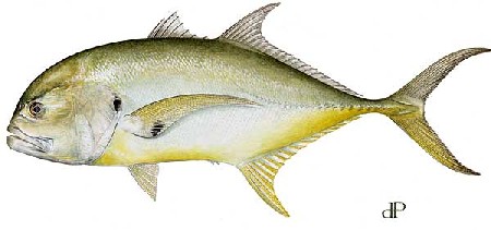 Jack Crevalle - One of the hardest fighting fish in the water, the yellow colored jack crevalle ranges in size from about a pound on up to 40 pounds or more. They are a schooling fish that will jump on almost any lure or bait offered, and leave town with authority when hooked. Fish over 20 pounds will put up a surprising fight that may last an hour or more depending on the tackle.